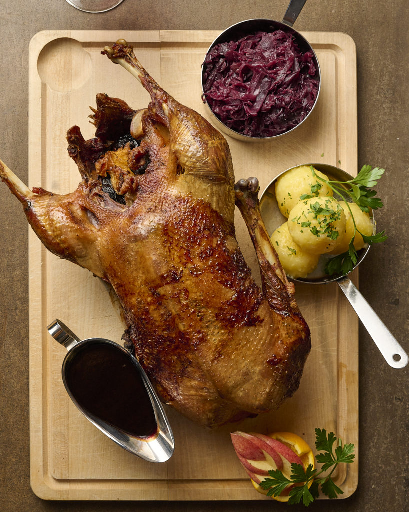 Gänsekeule | Hausgemachte Gänsejus | Blaukraut | Grünkohl | Kartoffelklöße